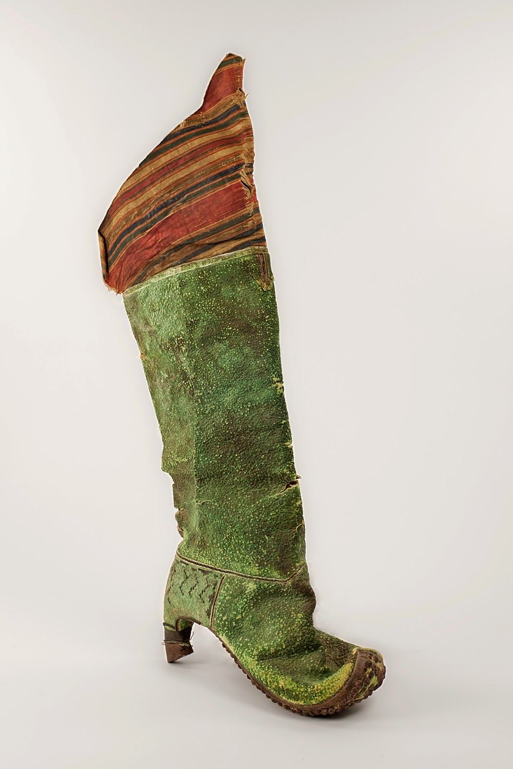 Yes. We have a single Persian boot from the late 17th century, which is unique to our collection. The museum acquired it because of its rarity and then had testing done on the leather, only to find that it was quite degraded. It had been squashed flat in storage, and its condition makes it impossible to be returned to its original shape. Nevertheless, it is a fine research example. If we choose to put it on display, it will have to be kept in a special climate controlled showcase.