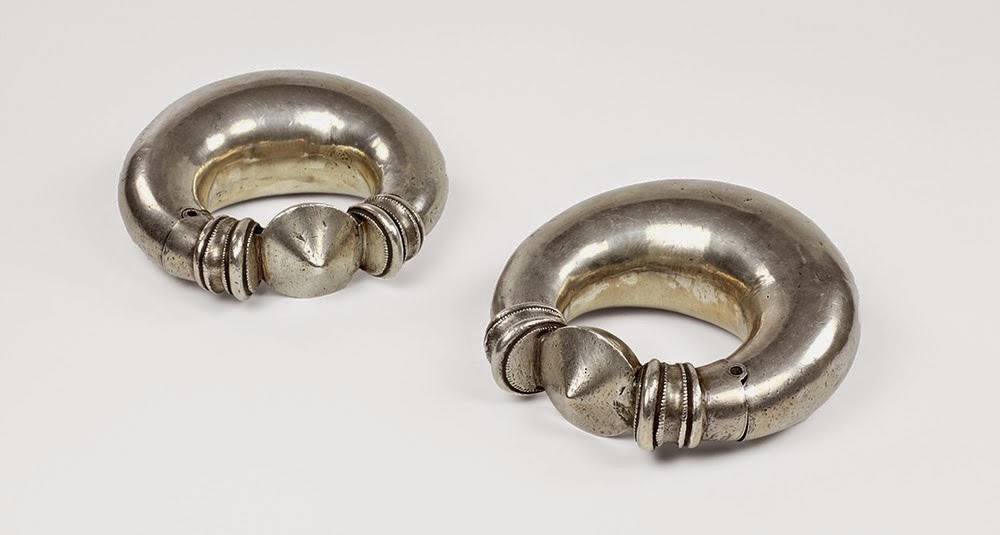 Anklets are worn singly and in pairs. They are made as single or multiple-piece units, either solid or hollow. The simpleness of this design emphasizes the purity of the silver.