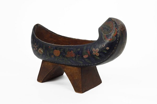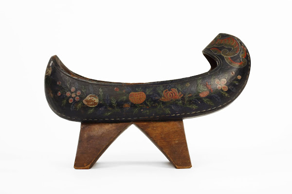 Namakshin are traditionally made out of wood and were designed to be worn in rainy weather or muddy conditions. Sometimes they were elaborately carved but this is the only painted example in our collection. An interesting detail is the painted ‘stitching’ along the ‘sole’ to make the ‘uppers’ appear sewn.