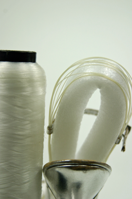 Yellowed nylon (above) and PVC straps (below).I’ve photographed the nylon besides a roll of new nylon monofilament to show how yellowed the straps have become with age.