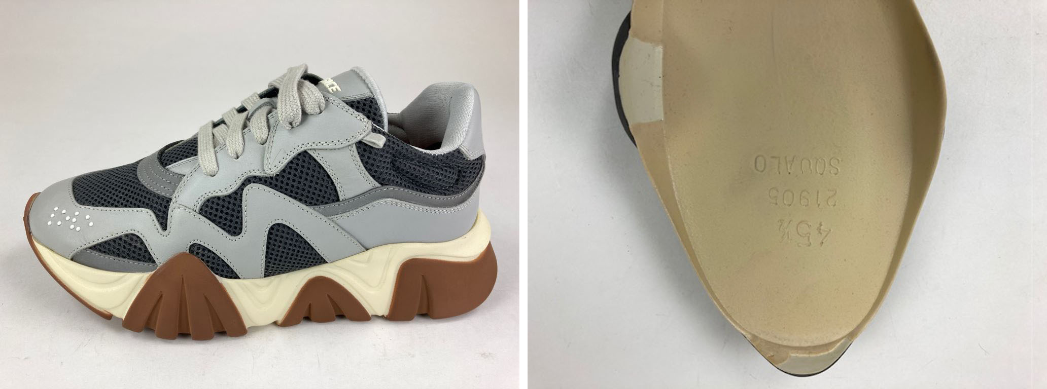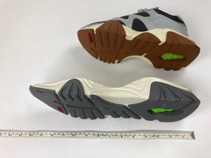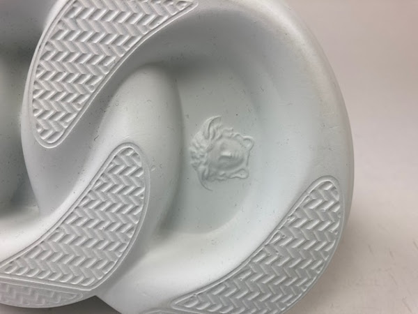 Bringing new and important new works in to the collection is an important part of the Bata Shoe Museum’s mandate. This year the museum has been very fortunate to bring the work of Salehe Bembury into the collection. This week I have been cataloguing the sample shoes he had shipped to us from his office in the US. Bembury is the Vice President of sneakers and men’s footwear at Milan-based Gianni Versace S.r.l., better known simply as Versace, and he has been designing footwear for the firm since 2017. These are the first Versace pieces in the Bata Shoe Museum’s collection.