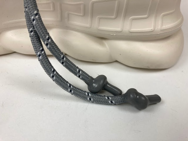 The ends of shoe laces are called ‘aglets’. The Versace Chain Reaction sneaker features an innovative detail on the aglets.