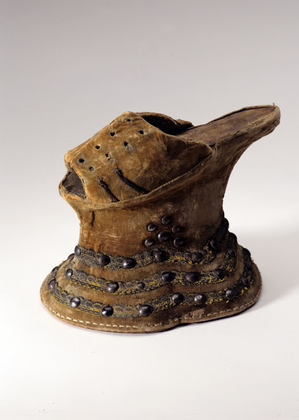 This of chopine most likely dates to the end of the sixteenth century. They were acquired by Mrs. Bata in 1983.