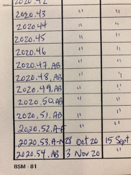 Let’s say this is the accession number for a pair of shoes in a two-piece shoe box. The number indicates that the object was accessioned in 2020; it was the 236th item to be added to the collection that year, and there were four components in total. The components were most likely the pair of shoes: A is given to the right shoe; B is given to the left; C would be the shoebox lid; D would be the box bottom. Sometimes we accession items that have more components than there are letters in the alphabet, so in that case, we repeat the alphabet adding an “A” in front. So, the letter sequence runs like this: