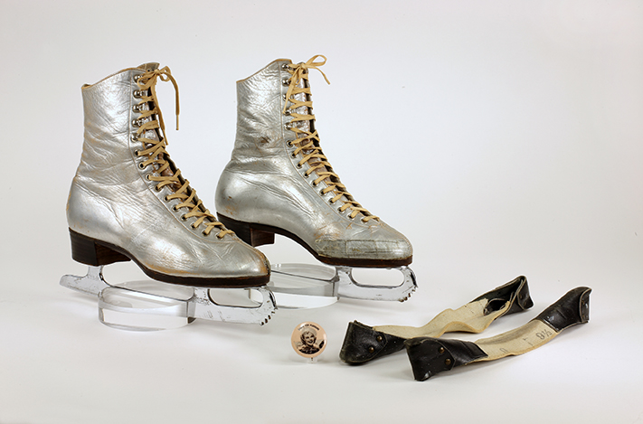 This pair of skates was originally worn by Norwegian Olympic gold-medal skater and celebrity Sonja Henie (1912-1969). They were acquired by the Museum in 2010 from a collector of antique skates and come directly from Henie’s estate. Mrs. Bata was named Sonja after Sonja Henie.